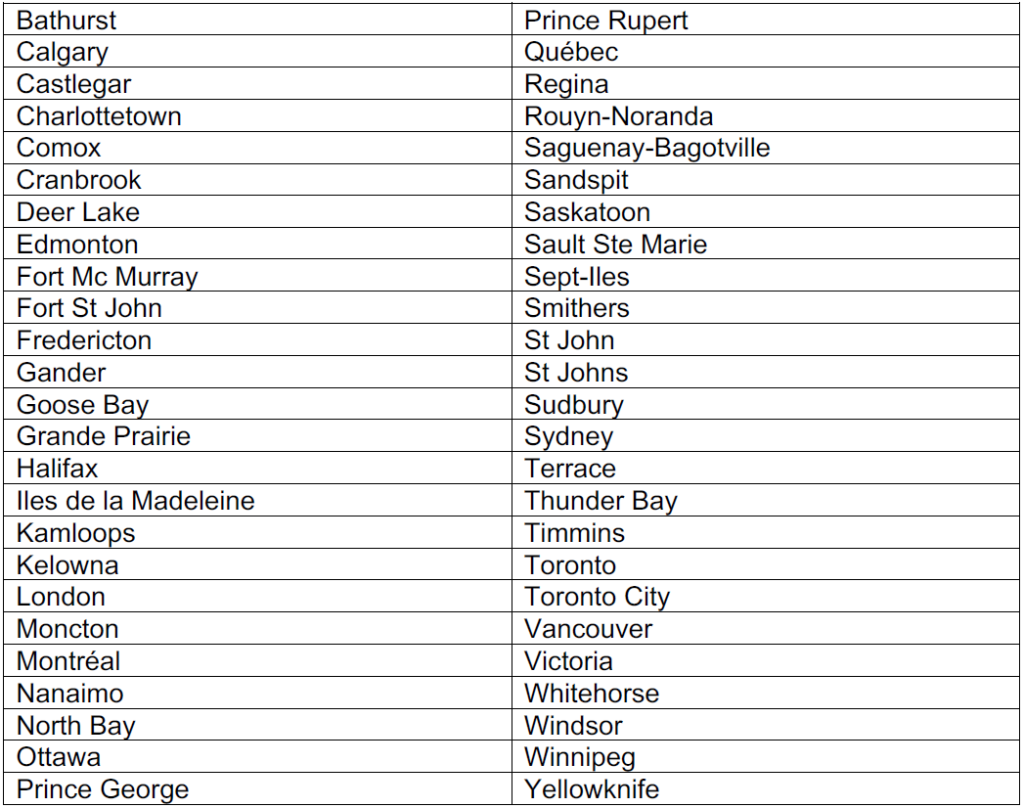 - 50 destinations au choix au Canada via Montréal ou Toronto (voir liste ci-dessous).